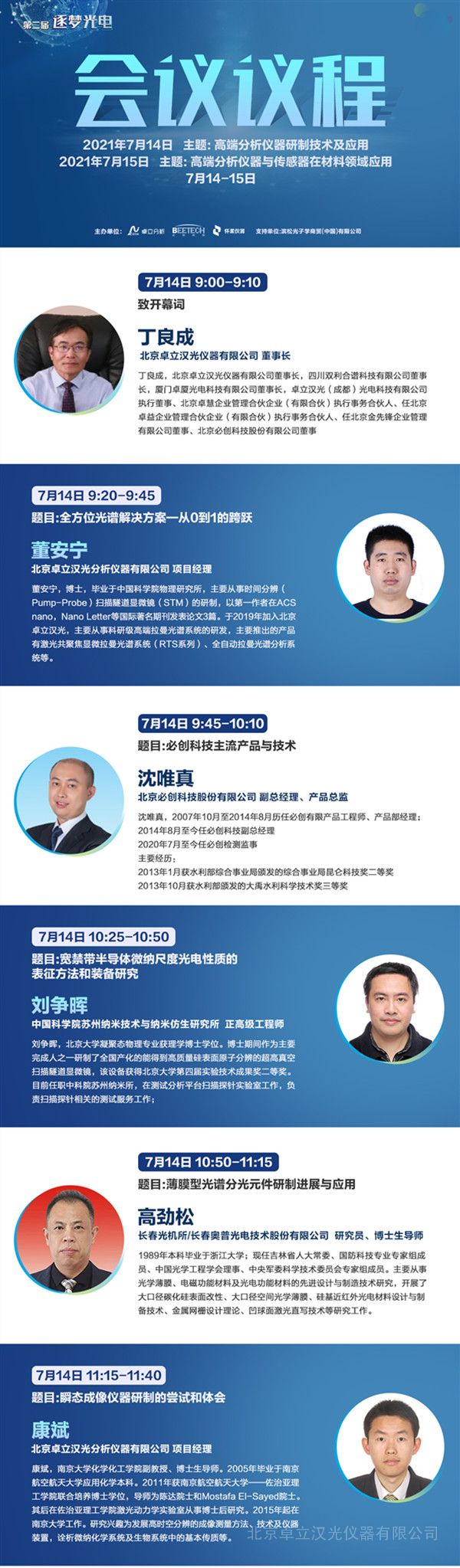 为响应国家整体布局,更好地为科学研究提供技术服务,卓立分析将于2021年7月14-15日在北京举行第二届“逐梦光电”国产分析仪器研制与应用研讨会暨高端分析仪器与传感器产业聚集发展论坛,邀请来自“产、学、政、研、用、金”不同领域的专家学者,畅谈光电行业前景!