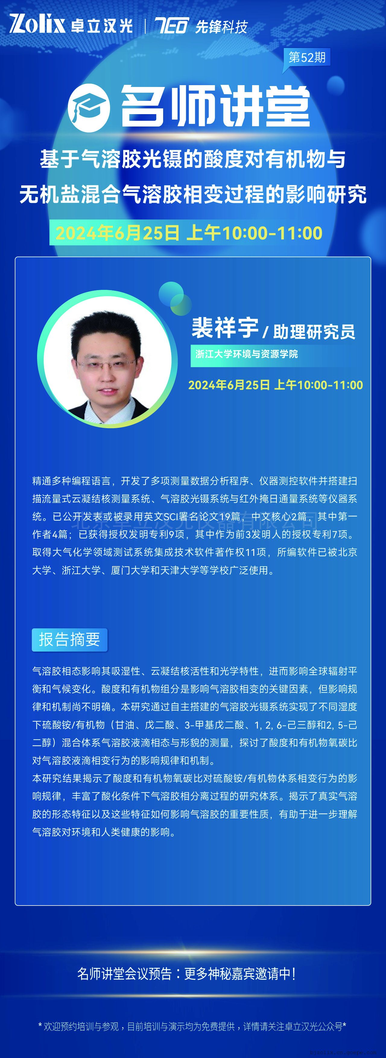 直播预约 | 裴祥宇《基于气溶胶光镊的酸度对有机物与无机盐混合气溶胶相变过程的影响研究》