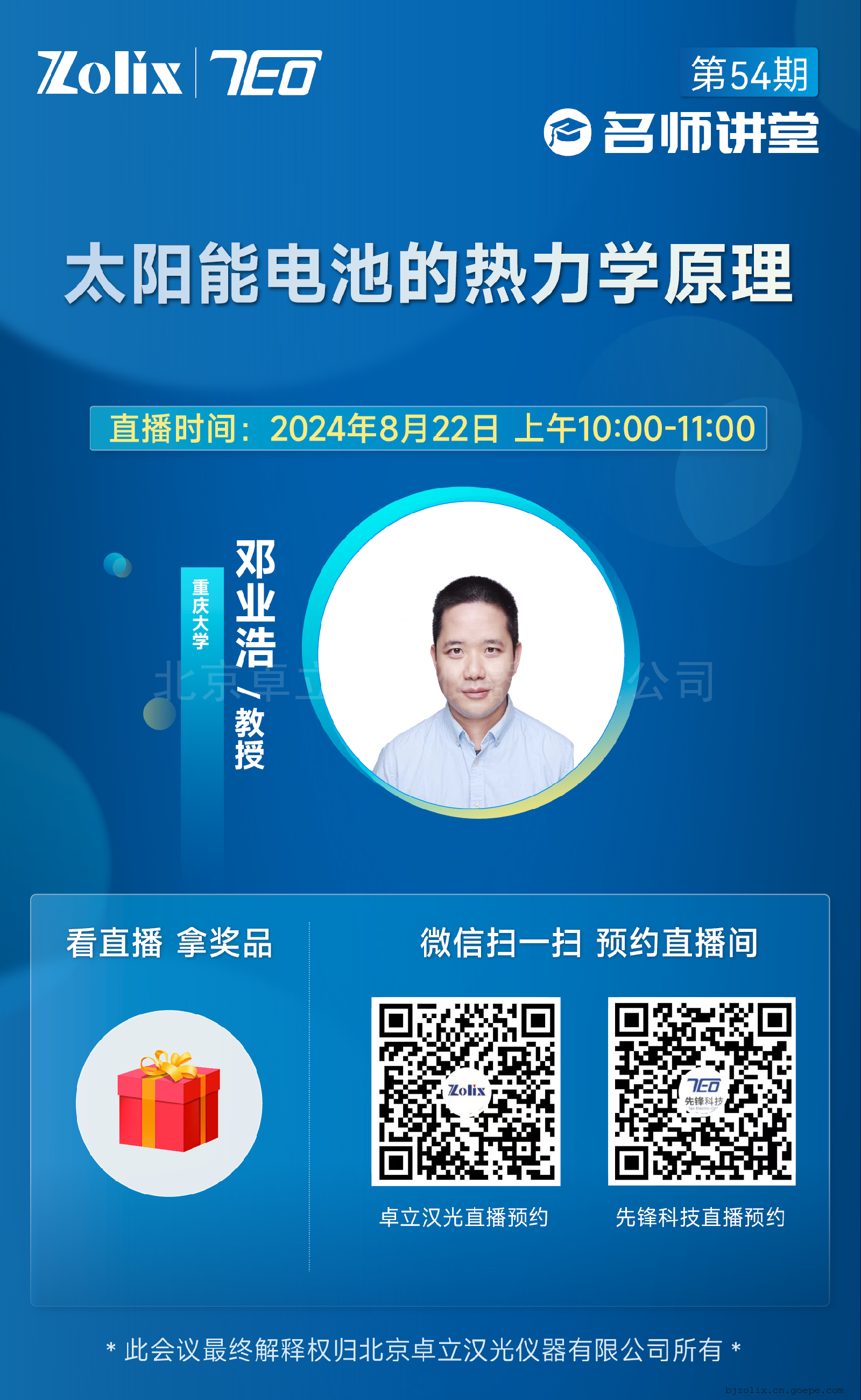 直播预约|与邓业浩教授探讨太阳能电池的热力学原理
