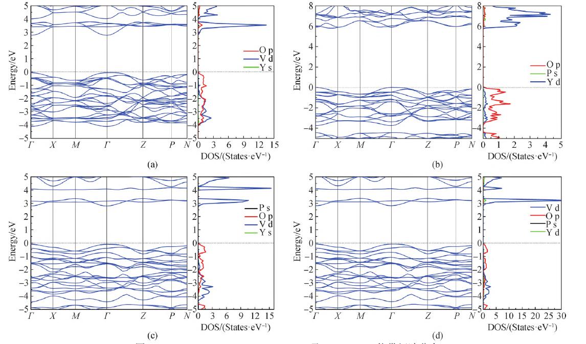图4 YVO4 (a)、YPO4(b)、Y2VPO8 (c)及Y2PVO8(d)能带间隙分布