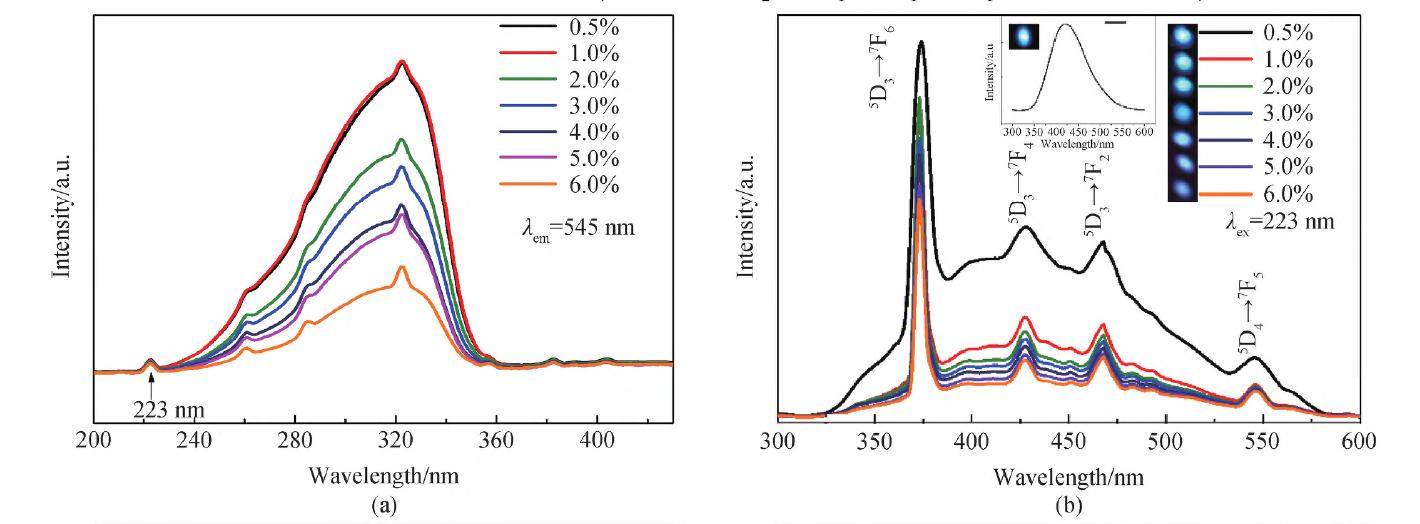 镧系(Ln3+ )稀土发光材料具备优异的光物理特性,在照明、显示、安全防伪、辐射探测等领域具有广泛应用。Tb3+在VUV/ UV 光激发下可产生蓝、绿光,选择合适的基质并调节掺杂Tb3+ 浓度,有望在同一材料体系中实现从蓝光到绿光的系列调控。Tb3+发光调控对开发面向白光LED 的照明材料及光学防伪材料均有一定研究意义。