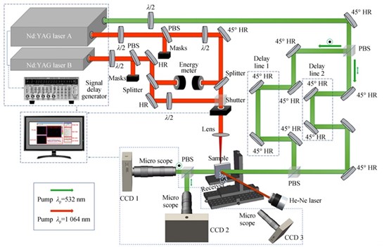 首先是灯泵Nd:YAG laser A主激光器,初期可以只采购一台0.5J到2J级别(例如Qsmart 450, QSmart 1500等型号),10-20Hz灯泵Nd:YAG激光器做为Nd:YAG laser A主光源,配齐二倍频加三倍频模块,则可涵盖1064nm,532nm,355nm测试波长,视要求再考虑是否继续增加266nm四倍频模块,213nm五倍频模块。 而另外一台联用的Nd:YAG laser B激光可放在相当靠后的计划再搭配,加上美国SRS公司DG645 可做两台YAG激光器前后激光脉冲的时序控制。