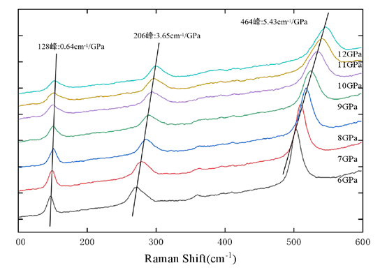 拉曼光谱是一种散射技术, 采用很小的激光束( 可以小到微米级) 激发样品, 只要顶砧对可见辐射透明, 可以把激光束聚焦到压腔样品上进行分析。拉曼谱峰是物质的指纹谱,对物质结构的变化非常敏感。同时,拉曼光谱测试技术是一种无损的测试技术。原位拉曼光谱测量可以得到不同压力下下物质结构变化的定性甚至定量的认识。目前研究者常常将拉曼光谱与高压甚至变温结合起来对物质进行研究。
