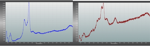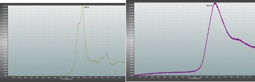 图6 14GPa红表示荧光峰原始数据(左); 17GPa红宝石荧光光谱原始数据(右)