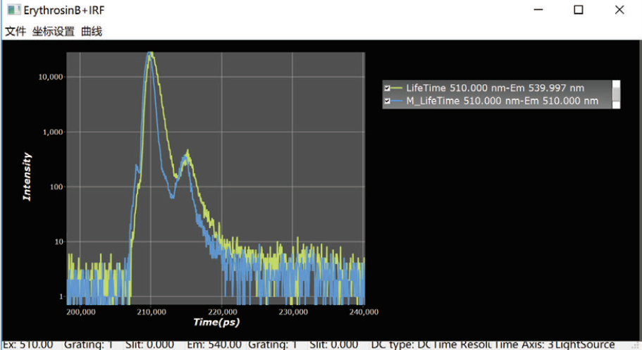 超连续激光器510nm激发的赤藓红溶液540nm发射光谱荧光寿命,拟合寿命460ps