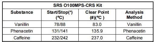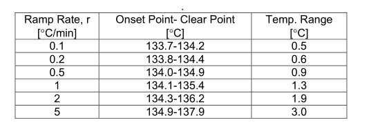 表2.非那西丁在不同斜坡速率下的熔点范围(SRS OptiMelt熔点分析仪)。