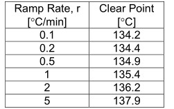 表1.非那西丁在不同斜坡速率下的澄清点(OptiMelt系统)。