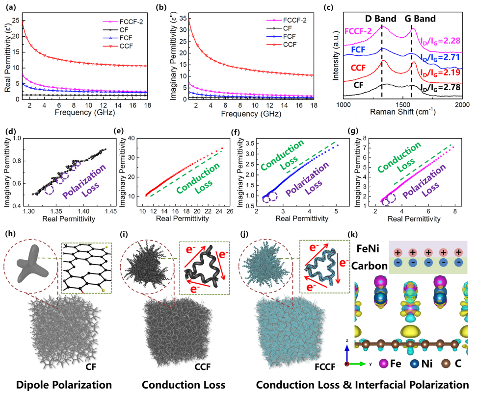 图五:CCF和FCCF复合材料的介电常数及拉曼光谱。