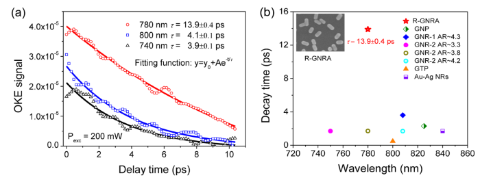 通过光学克尔效应(OKE)技术测得R-GNRA的热电子弛豫时间长达 13.9 ps,是单个金纳米结构的4倍以上。