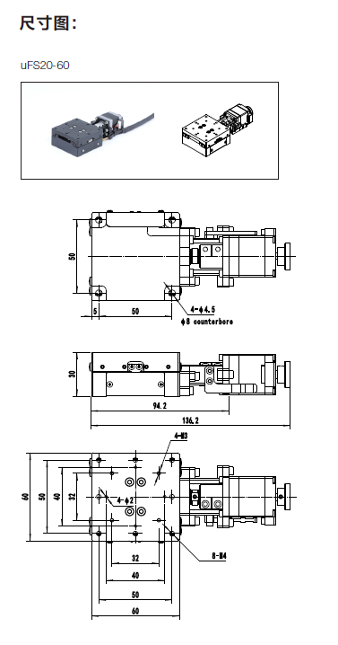 详细信息| 询价留言品牌:卓立汉光 型号:uFS20-60 加工定制:否 用途:电动直线滑台 行程(mm):20 台面尺寸(mm):60×60 说明: