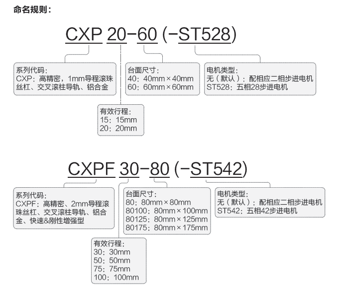 • 采用小导程滚珠丝杠,标配二相步进电机,微步能力强、耐用性好