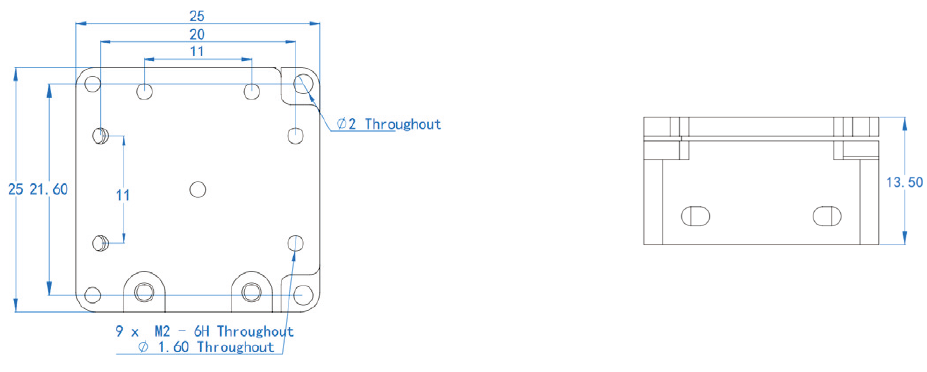 • 紧凑的设计,外形尺⼨ : 55*55*15 mm
