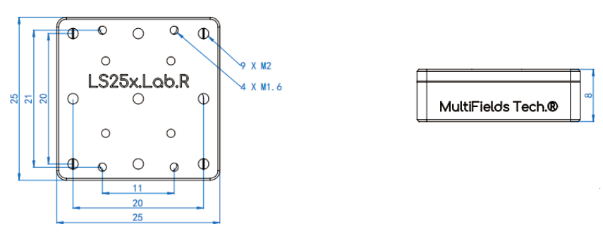 • 25 × 25 mm × 8 mm极紧凑外形设计