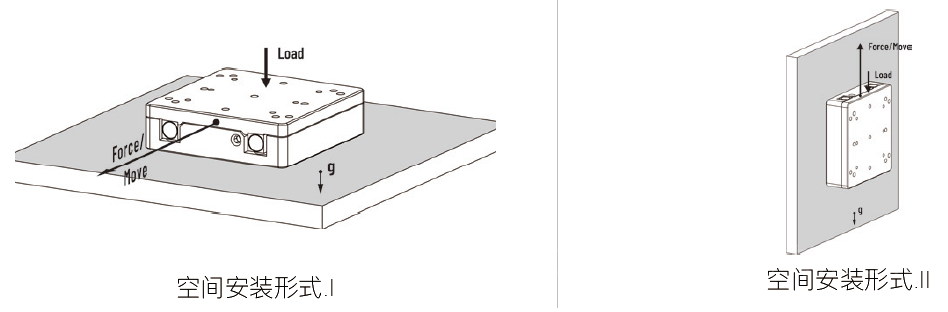 运动参数-空间推荐安装形式 II. (下列性质均在推荐安装形式下测得)
