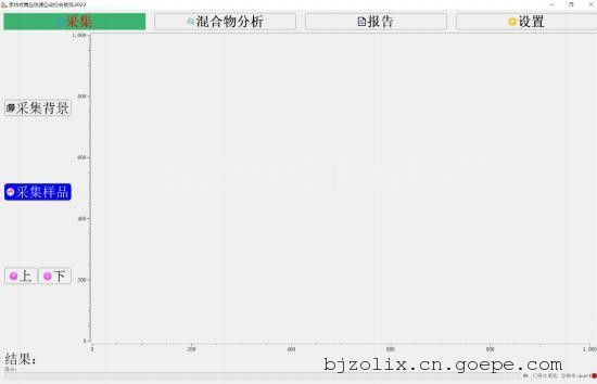 一体化设计界面,包含“采集-图像-混合物分析-报告-设置”等集成化功能, 遭图采集结束后,可在报告界面直接显示样品照片、谱图的结果。
