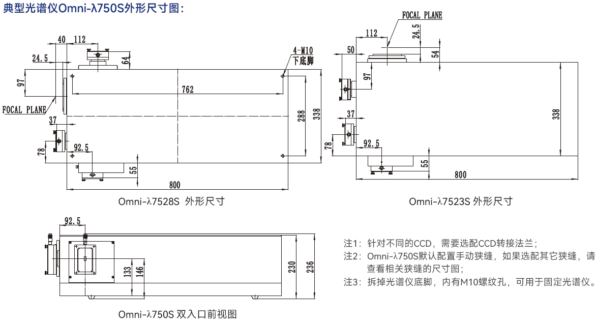 注1:本型号系列,为手动狭缝(电动狭缝需要额外选择)注2:本型号系列,需要额外选配光栅,*多可配置3块光栅;