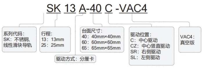 SK 系列产品是卓立汉光开发的高精密手动直线滑台。该系列产品主体材料采用 304 不锈钢,采用超高精密交叉滚柱导轨导向,精密分厘卡(或微调螺纹副)驱动,配合卓立汉光的精密磨削技术,使该系列产品具有不大于 2μm 的高灵敏度,并且运行平顺,无跳动现象。该系列产品具有很高的通用性,适合于高精度的手动调整领域,尤其适合对负载能力、运动精度有较高要求的场合,也可在真空中使用(需换装真空脂)。