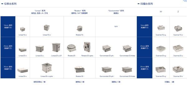 选件 2 — 压电运动模块, 产品系列