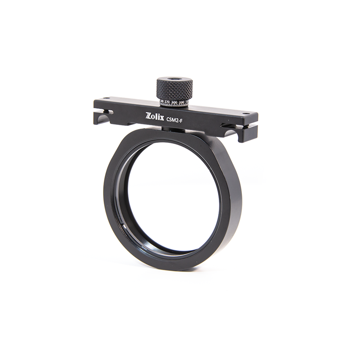 ZOLIX 旋转快拆型安装架兼容 30mm 笼式系统,支持手动 360° 旋转光学元件。通过滚花旋钮(或使用 5mm 内六角扳手操作)可驱动光学元件旋转,其安装座的转轴位置可通过 M3 紧定螺钉锁定。黑色旋钮带有 360°刻度线,并以 5°为细分单位提供精确角度指示。
