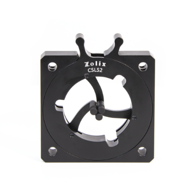 ZOLIX提供的安装座兼容60mm笼式系统,用于安装直径范围在3.8 mm-46 mm的光学元件。通过三个弹簧式夹臂固定光学元件 ,夹臂可通过单手进行操作。笼杆连接通孔处各配有一个位于侧面的锁紧固定螺丝,可使用1.5 mm六角扳手紧固安装座。安装座底部带有一个M4螺纹孔用于连接接杆,自定心透镜安装座兼容笼式系统和自由空间。