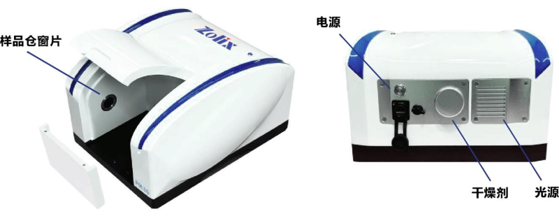 ● 可更换多个部件,包括光源,干燥剂,电源,样品仓窗片,光谱仪的红外光源或干燥剂更换无需打开光学台,用户可自行更换。